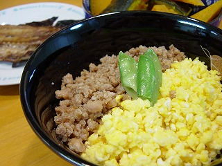 ③塩を少し入れた溶き卵を弱火でこれまた菜箸二組くらいでぼろぼろになるまで混ぜて完成。