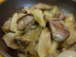お酒で下湯でしたレバーを玉ねぎと合わせて砂糖・醤油・だし・さけ・生姜などで煮込みました。