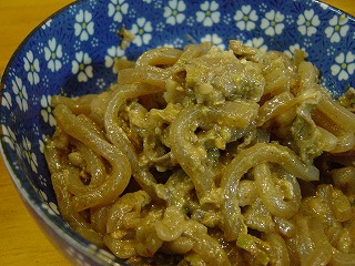 ということで、短冊ギリにした糸こんにゃくを入れて煮込んだ一品。