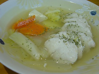 - とりハムのゆで汁の鍋に1.の野菜を入れて火にかけ、野菜がやわらかくなるまで15~20分煮る。