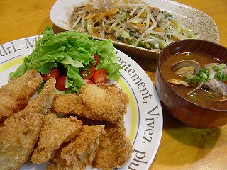 タラのフライとせせり肉