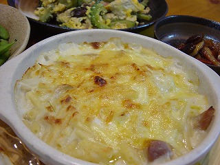 グラタンは得意の手作りホワイトソース。私が鶏肉好きなので我が家のグラタンは、ほとんどにわとりさん。