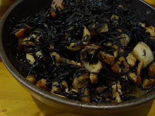 混ぜご飯の具に、ひじきとちくわを加えて作った、ひじきの煮物にリメイクしたつながり料理です。