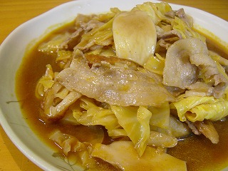 前日に作った野菜入りミートローフのソースを使ったキャベツ煮込み。