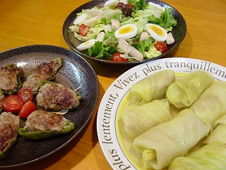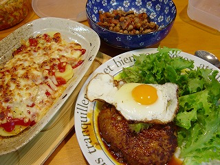 多目にひき肉を買って、ひき肉料理を二品。タネを作る時間の短縮で両立メニューになります。