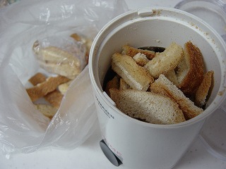 子供たちは食パンの耳を食べないからそれをパン粉に使ったりしています。