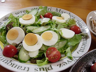 (下)カニカマとゆで卵のせサラダ
