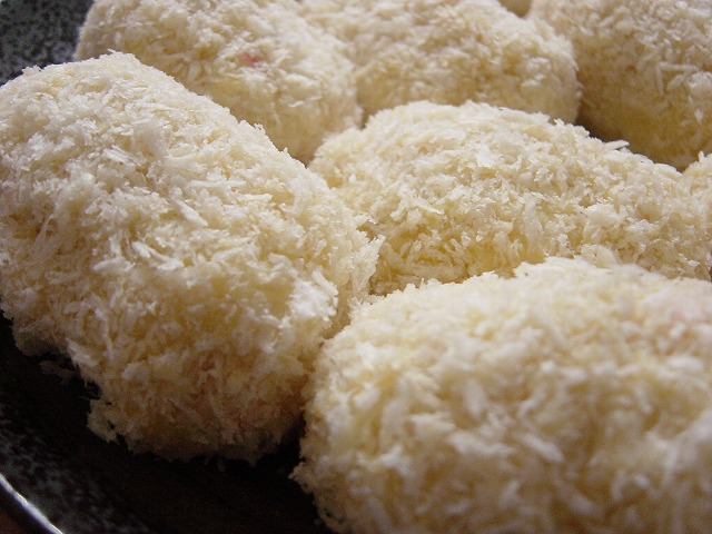 ⑤お好みの大きさに形作り、冷凍庫で少し固まらせる。(冷凍庫だと霜がおりて揚げる時に、水分がはねるので時間がある時は、冷蔵庫でじっくり冷やし固める方が良い。)