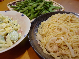 他にマカロニサラダと枝豆。