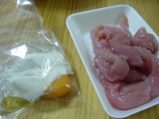 ビニール袋に卵と小麦粉を入れ袋の外からぐにゃぐにゃ混ぜる。