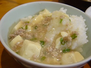 麻婆豆腐と水菜と揚げ油の炒め物。(前日の中華あんの残りも)