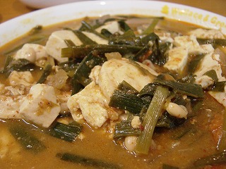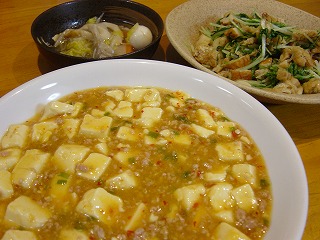 麻婆豆腐と水菜の炒め物