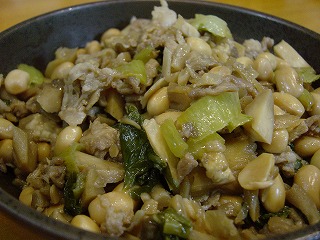 ちなみにこちらは、豚肉と青梗菜としめじと大豆の水煮です。